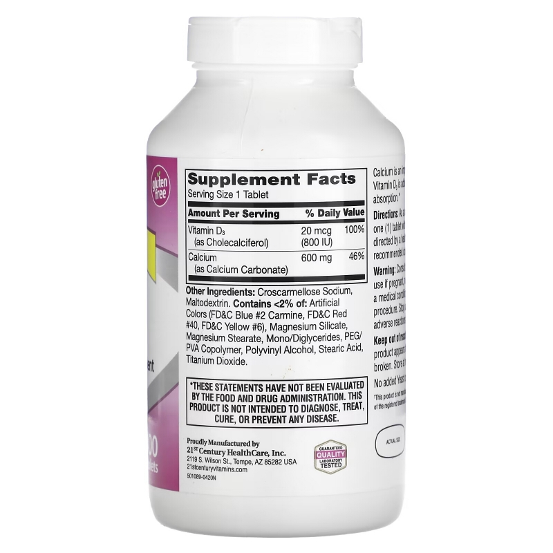 21st Century Health Care 600 + D3 кальций 400 капсуловидных таблеток – отзывы, купить с доставкой по Москве и России по цене выгоднее, чем в аптеке | интернет-магазин novosibirsk.fakeoff.ru