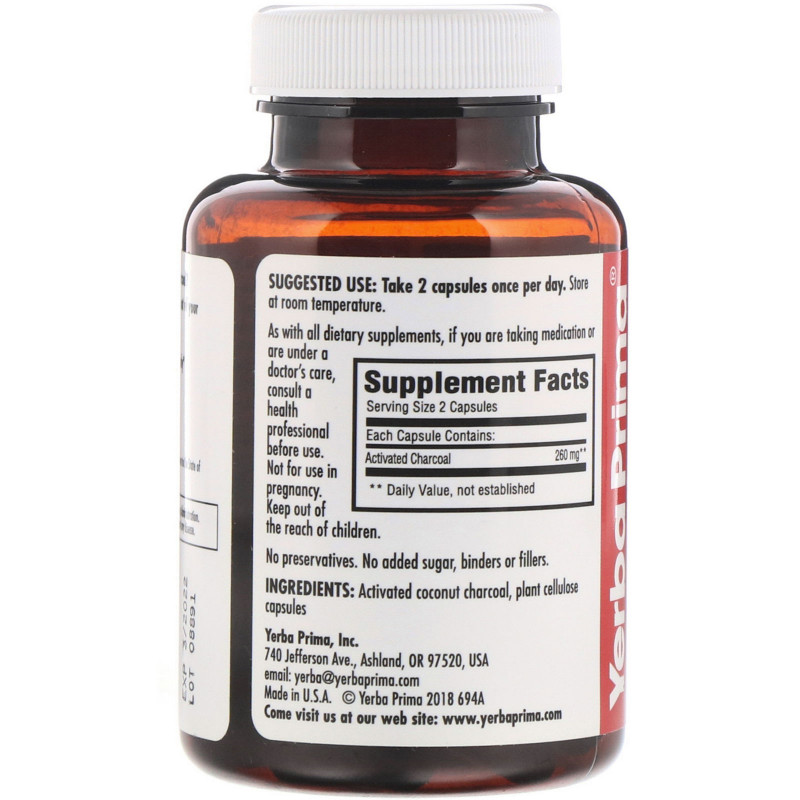 Yerba Prima, Активированный кокосовый уголь, 60 вегетарианских капсул