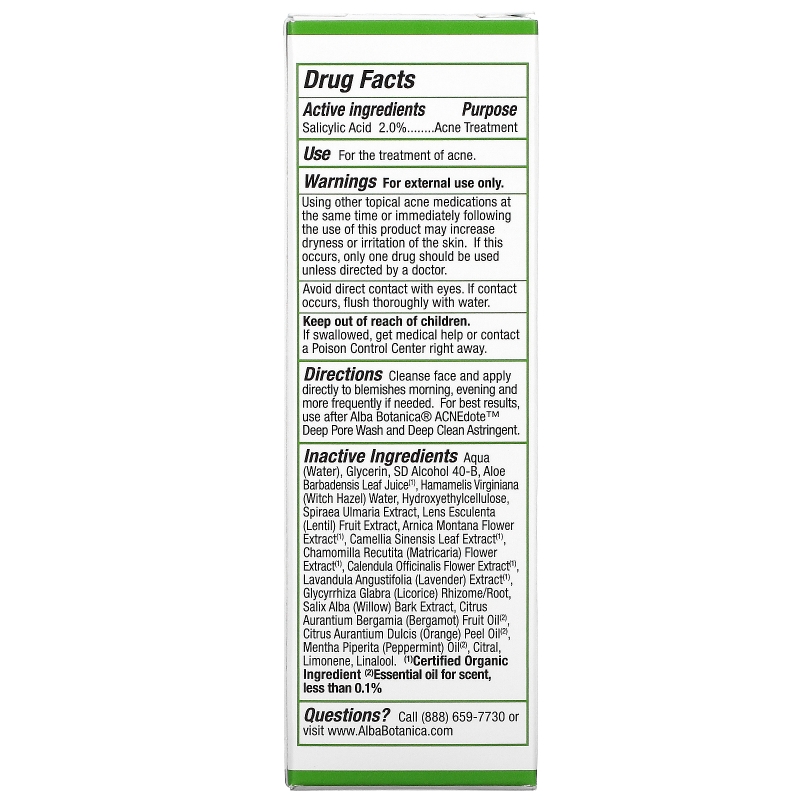 Вымойте лицо и нанесите прямо на угревую сыпь утром, вечером или в любое другое время, по необходимости. Для получения наилучших результатов применяйте после Натурального средства для глубокой очистки пор ACNEdote и Deep Clean Astringent от Alba Botanica.