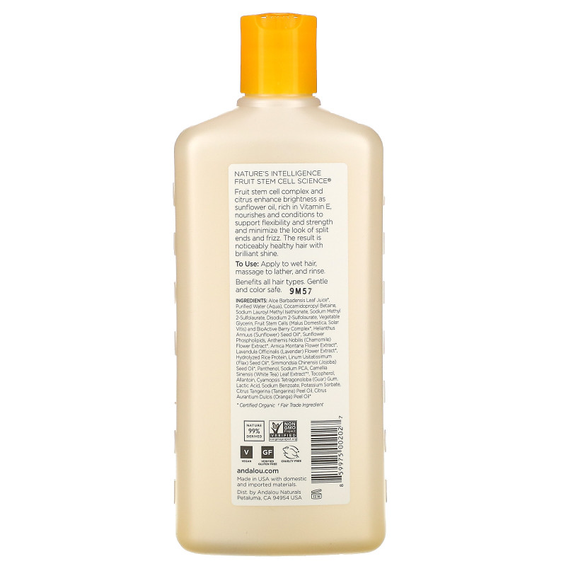 Стволовые клетки фруктов Andalou Naturals увеличивают срок жизни фолликулов и улучшают состояние волос от корней до самых кончиков.