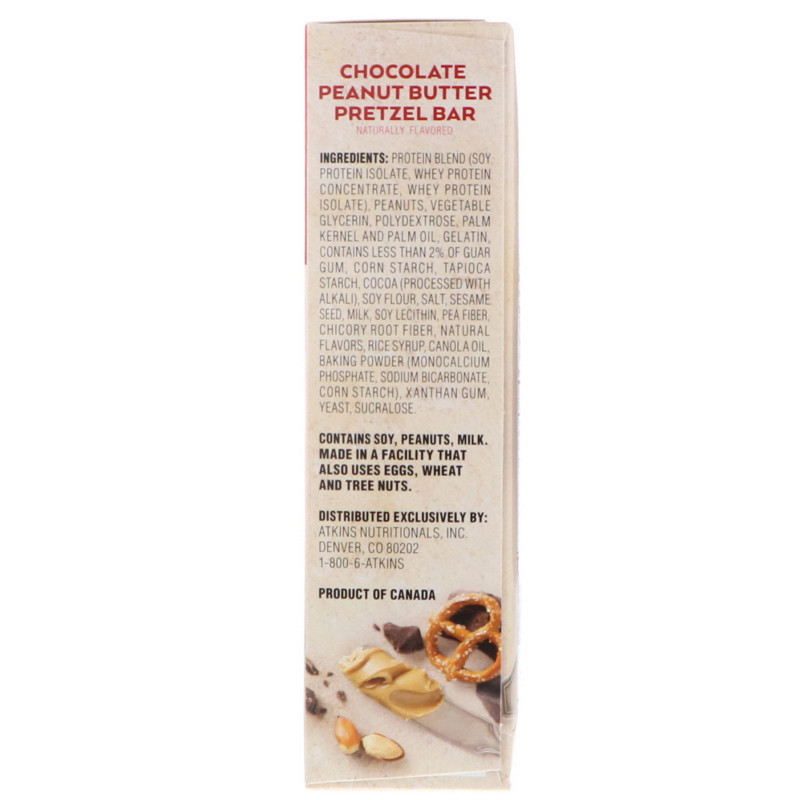 Новые батончики со вкусом претцелей с шоколадно арахисовой пастой от Atkins представляют собой сладко-соленую хрустящую смесь претцелей, настоящего поджаренного арахиса, кремового арахисового масла и облиты молочным шоколадом.