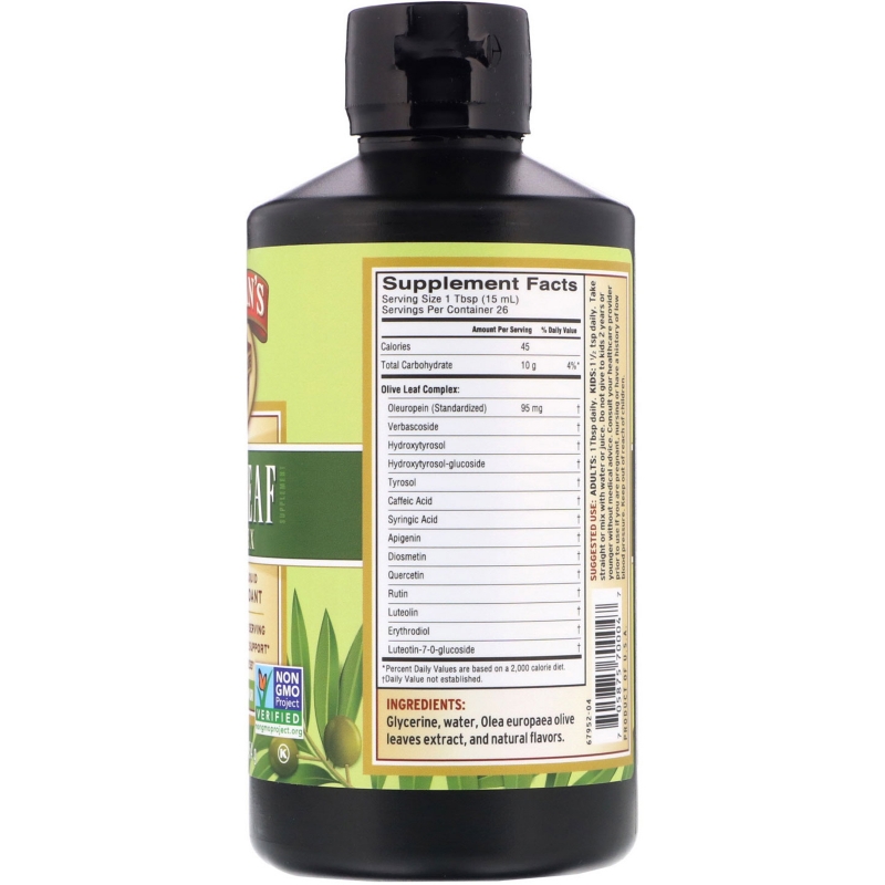 Fresh-pressed olea europaea varietal olive leaves, glycerin, water.