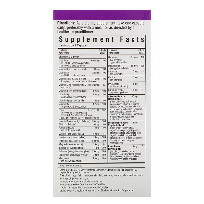 Купить Bluebonnet Nutrition, Ladies 'ONE, комплекс на основе цельных продуктов, 90 растительных капсул – цена 8020 ₽, заказать с доставкой в Новосибирск | Интернет-магазин novosibirsk.fakeoff.ru