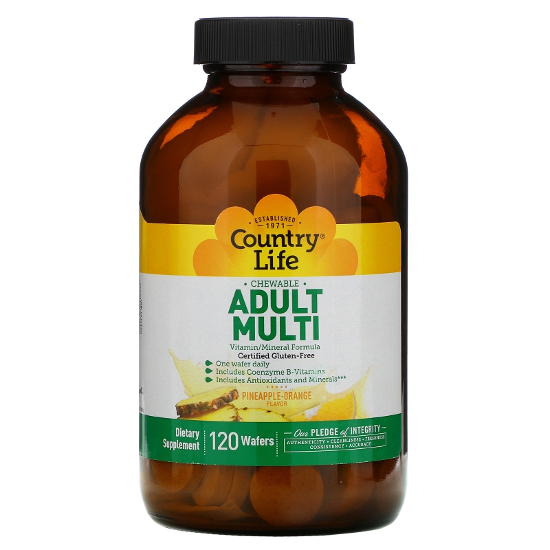 Купить Country Life, Жевательные мультивитамины для взрослых, со вкусом ананаса и апельсина, 120 вафель – цена 6920 ₽, заказать с доставкой в Новосибирск | Интернет-магазин novosibirsk.fakeoff.ru