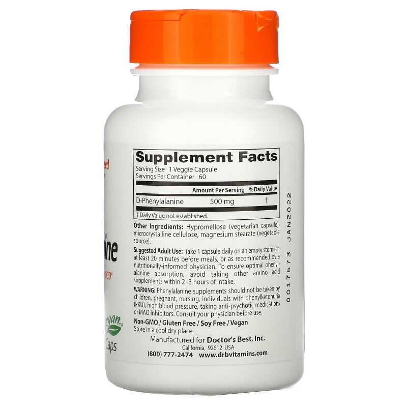 Doctor's Best Best D-фенилаланин 500 мг 60 растительных капсул – отзывы, купить с доставкой по Москве и России по цене выгоднее, чем в аптеке | интернет-магазин novosibirsk.fakeoff.ru