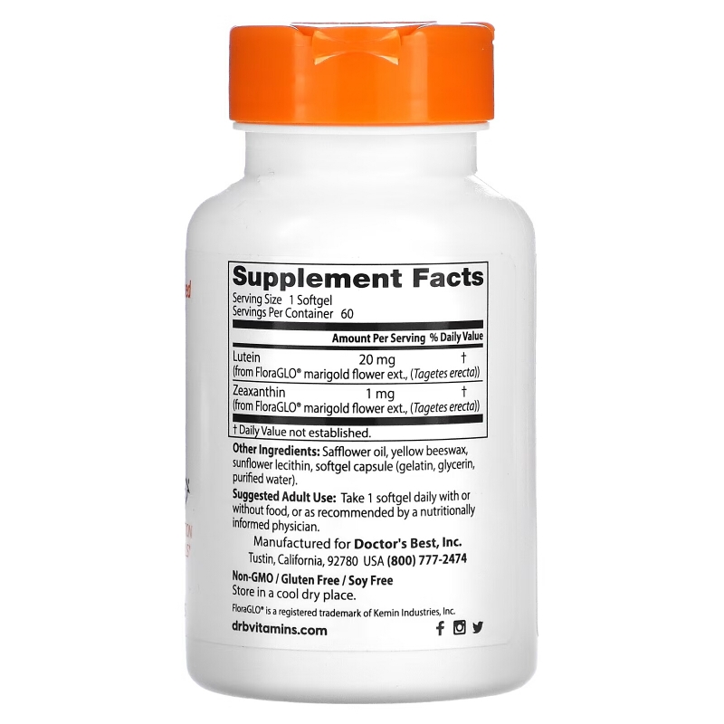 Лютеин FloraGLO от Best и зеаксантин содержат высококачественный лютеин FloraGLO, биодоступный, природный источник лютеина, извлеченного из цветков календулы, наиболее распространенного источника в природе. Лютеин FloraGLO производится по запатентованной технологии (патенты США RE40, 912E, США RE40, 931E, США RE40, 938E и 5648564).