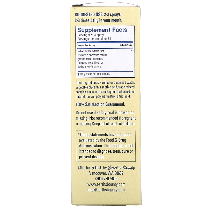 Earth's Bounty Longevitrol - антивозрастной спрей против старения с экстрактом оленьих рогов и факторами роста 1 унция (30 мл)