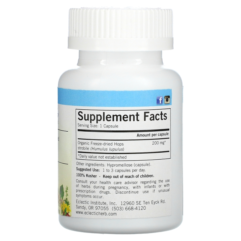 Eclectic Institute Шишки хмеля 200 мг 90 вегетарианских капсул без ГМО – отзывы, купить с доставкой по Москве и России по цене выгоднее, чем в аптеке | интернет-магазин novosibirsk.fakeoff.ru