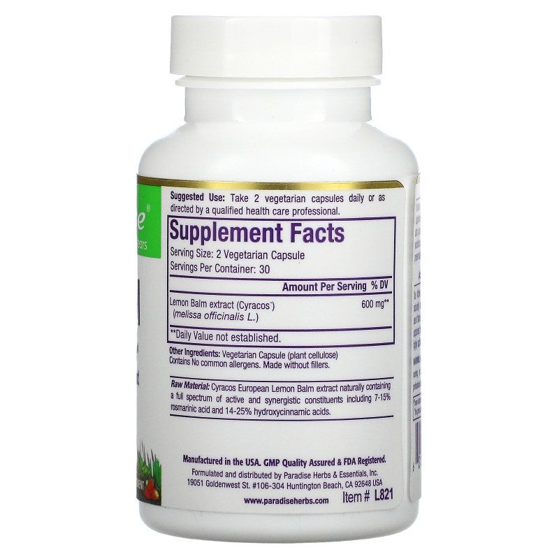 Купить Paradise Herbs, Европейская мята лимонная, 60 вегетарианских капсул – цена 3580 ₽, заказать с доставкой в Новосибирск | Интернет-магазин novosibirsk.fakeoff.ru