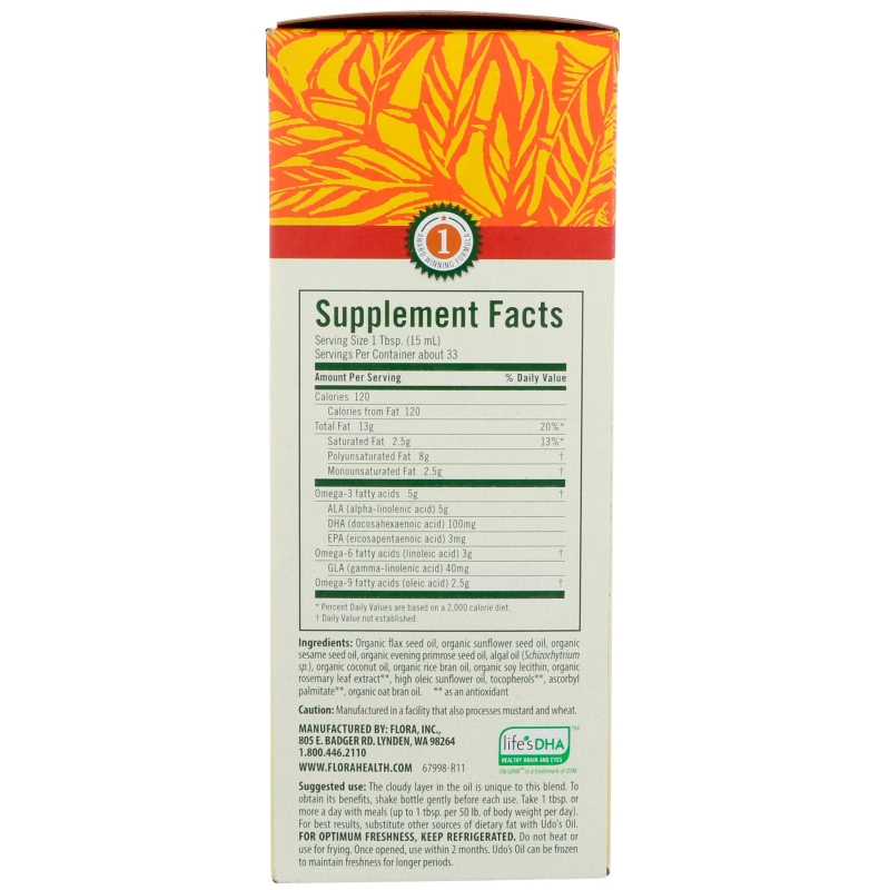 Осторожно встряхнуть флакон перед каждым использованием. Принимать по 1 Ст.л или более в день во время еды (до 1 Ст.л. на 50 кг массы тела в сутки). Для лучших результатов, замените другие источники пищевых жиров с помощью Udo's Oil.