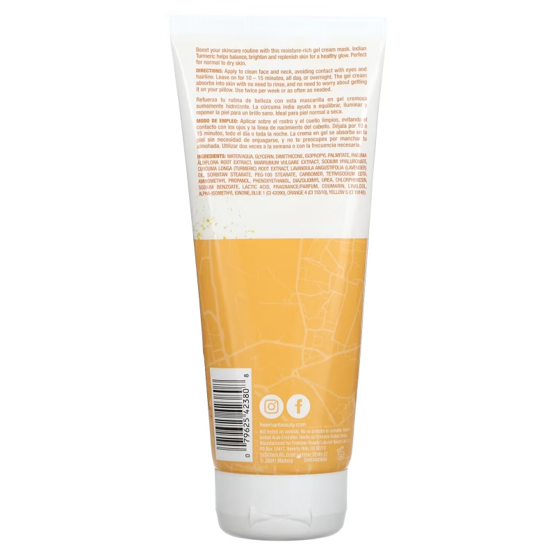 Freeman Beauty, увлажняющая гелево-кремовая маска с индийской куркумой, 175 мл (6 жидк. унций)
