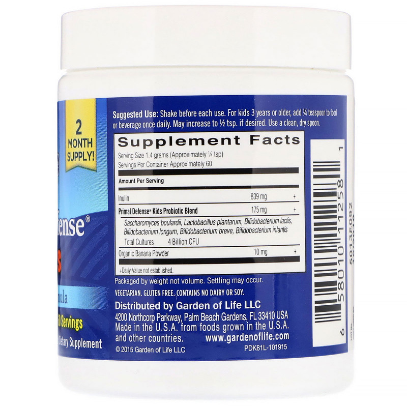 Купить Garden of Life Для детей основная зищита пробиотическая формула природный банановый ароматизатор 27 унции (768 г) – цена 5590 ₽, заказать с доставкой в Новосибирск | Интернет-магазин novosibirsk.fakeoff.ru
