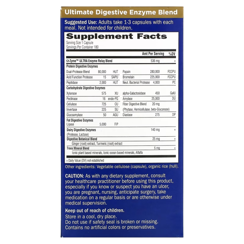Garden of Life Ω-Zyme Ultra Комплекс пищеварительных ферментов 180 вегетарианских капсул UltraZorbe