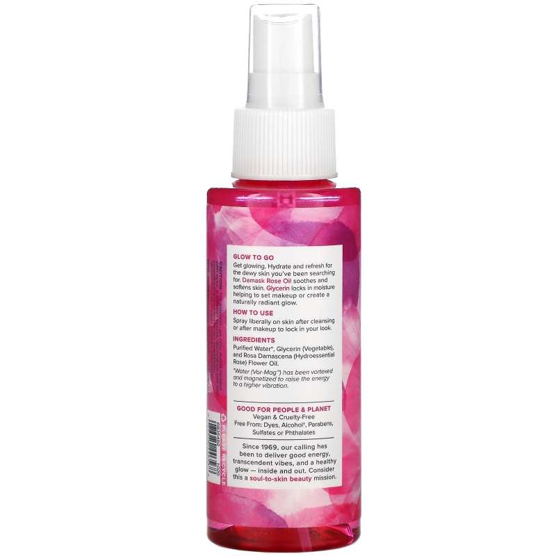 Vor-mag water (water that has been vortexed and magnetized to raise the energy to a higher vibration that we believe to be more beneficial), natural vegetable glycerin and rosa damascena (hydroessential rose) flower oil.