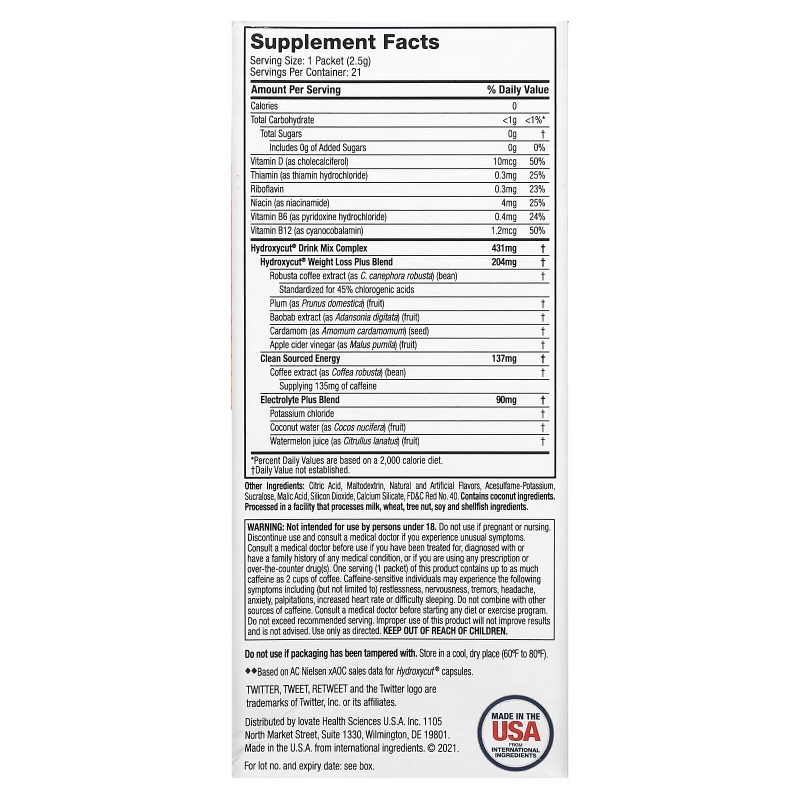 Hydroxycut, Weight Loss Drink Mix, Wildberry Blast, 21 Packets, 1.9 oz (53 g)