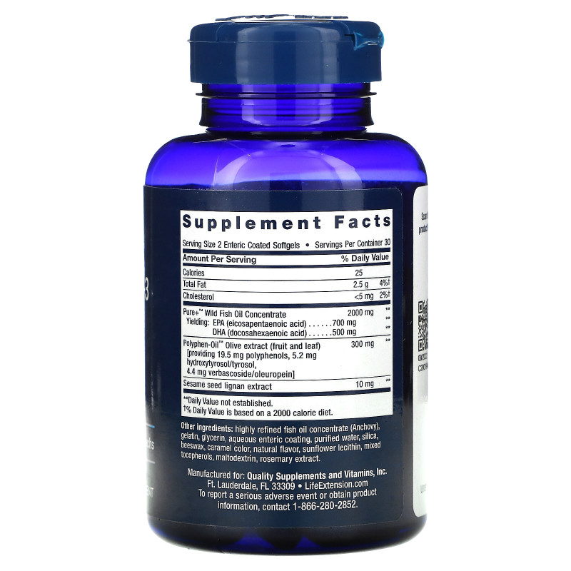Описание добавки Life Extension, Основные Омега, Супер Омега-3, 60 Капсул Покрытые Кишечнорастворимой Оболочкой