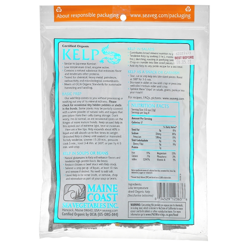 Maine Coast Sea Vegetables Бурые водоросли дикая атлантическая морская капуста 56 г – отзывы, купить с доставкой по Москве и России по цене выгоднее, чем в аптеке | интернет-магазин novosibirsk.fakeoff.ru