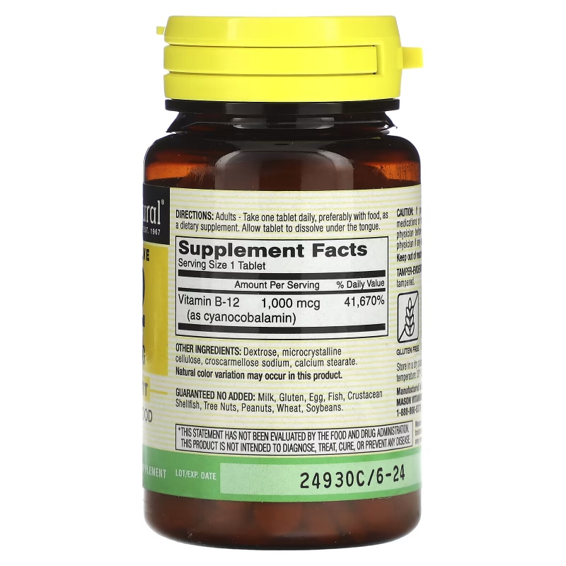 Купить Mason Natural Витамин B-12 1000 мкг 100 таблеток – цена 1650 ₽, заказать с доставкой в Новосибирск | Интернет-магазин novosibirsk.fakeoff.ru