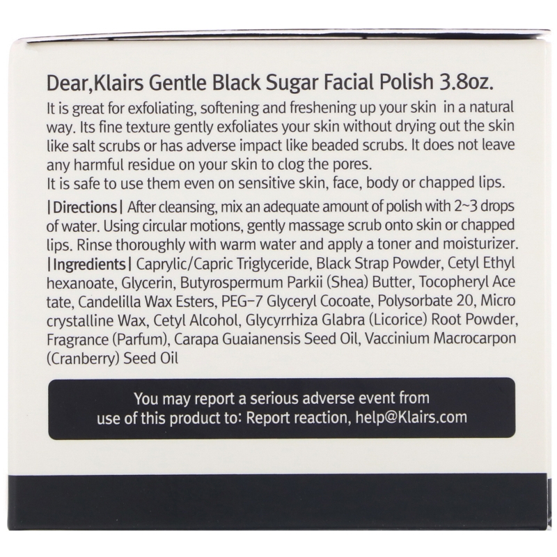 Компоненты добавки Dear, Klairs, Мягкое отшелушивающее средство для лица с черным сахаром, 3,8 унц. (110 г)