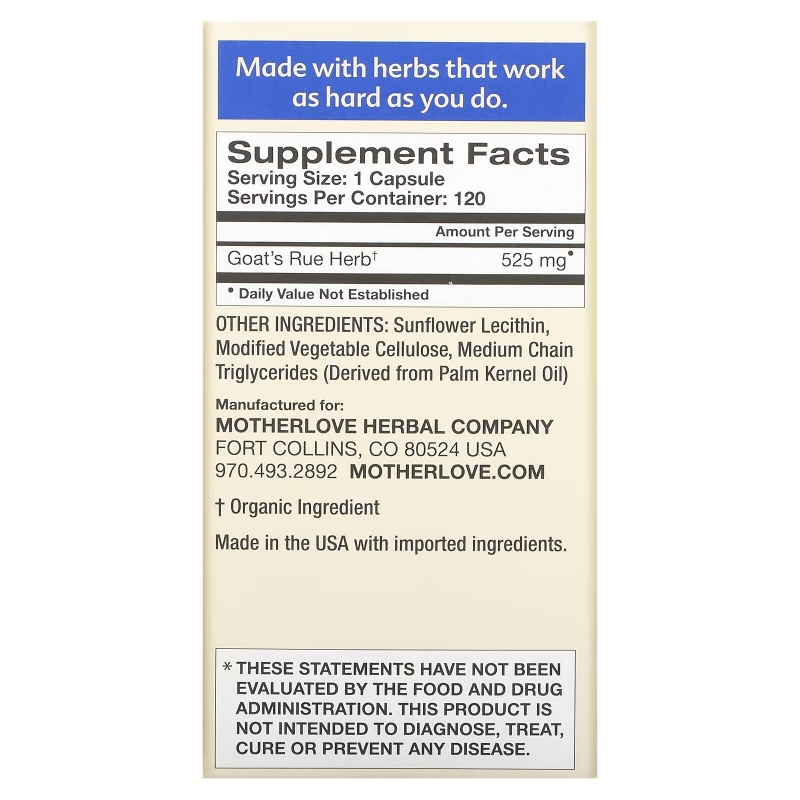 Motherlove козлятник лекарственный 120 травяных жидких капсул