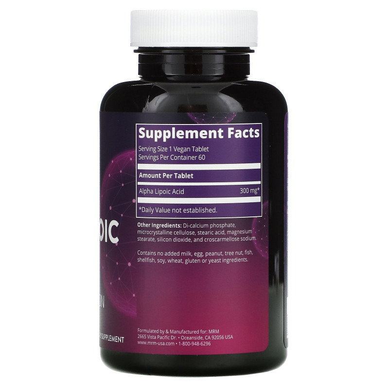 Описание добавки MRM, Альфа-липоевая кислота, 300 мг, 60 веганских таблеток