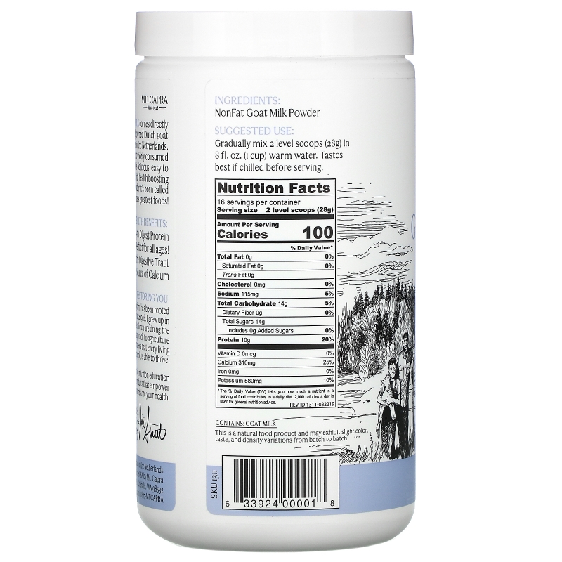 Mt. Capra CapraMilk Обезжиренное козье молоко в виде порошка 1 фунт (453 г) – отзывы, купить с доставкой по Москве и России по цене выгоднее, чем в аптеке | интернет-магазин novosibirsk.fakeoff.ru
