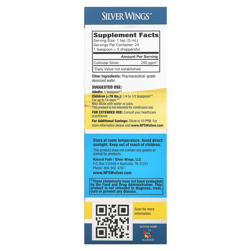 Купить Natural Path Silver Wings, Коллоидное серебро, 250 частей на миллион, 4 жидких унции (120 мл) – цена 5130 ₽, заказать с доставкой в Новосибирск | Интернет-магазин novosibirsk.fakeoff.ru