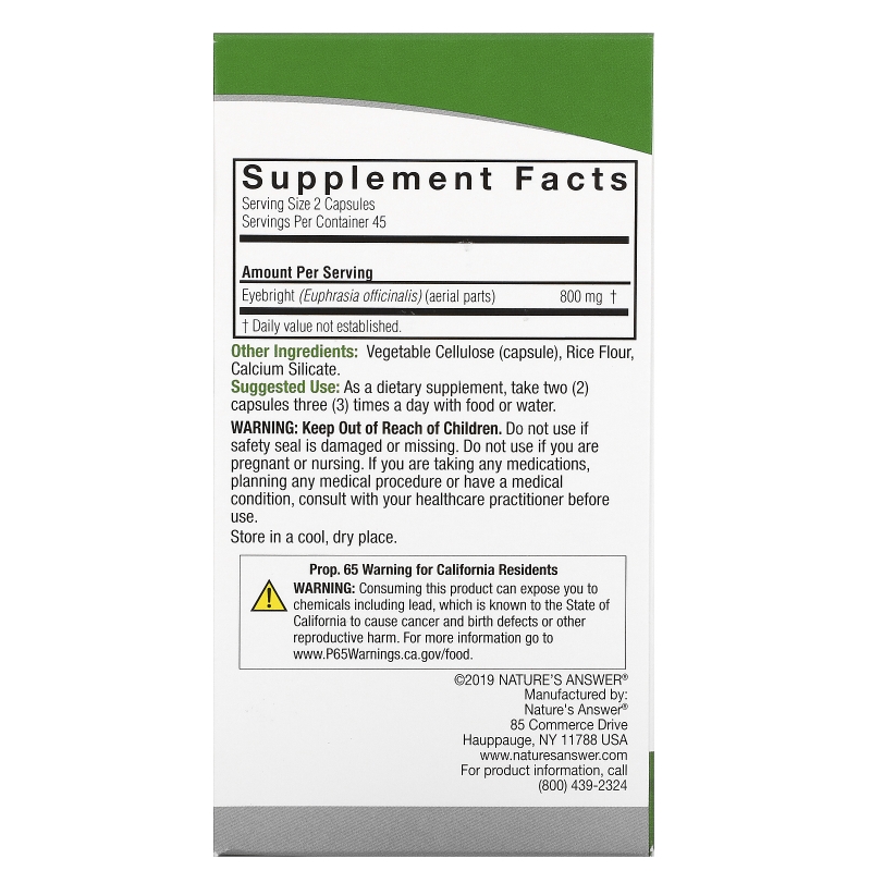 Купить Nature's Answer, Очанка, 800 мг, 90 вегетарианских капсул – цена 2540 ₽, заказать с доставкой в Новосибирск | Интернет-магазин novosibirsk.fakeoff.ru