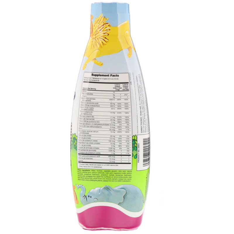И наконец, напиток Animal Parade включает в себя 11 полезных пищевых концентратов, в том числе ананас, яблоко, биофлавоноиды лимона, шиповник, цельнозерновой коричневый рис, брокколи, шпинат, манго, морковь, барбадосскую вишню и папаю. Напиток Animal Parade - сочное лекарство для привередливых детей, которым не нравятся таблетки или капсулы!