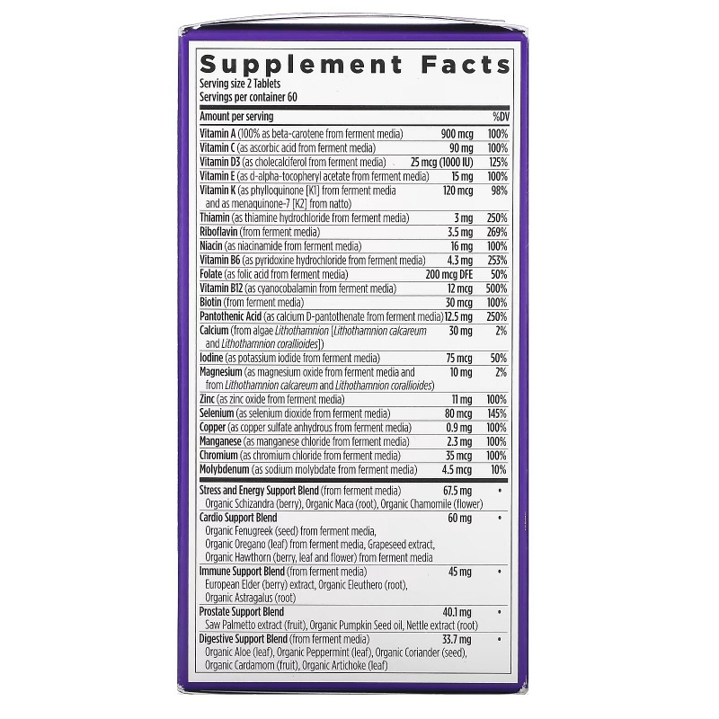 Органические культивированные цельнопищевые комплексные витамины и минералы действуют совместно, обеспечивая общее здоровье организма, и направленно действуя на отдельные системы, а не только устраняют дефицит питательных веществ.