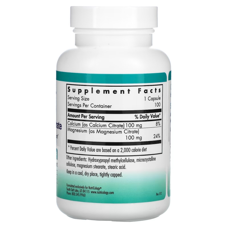 Nutricology Цитрат кальция и магния 100 капсул на растительной основе