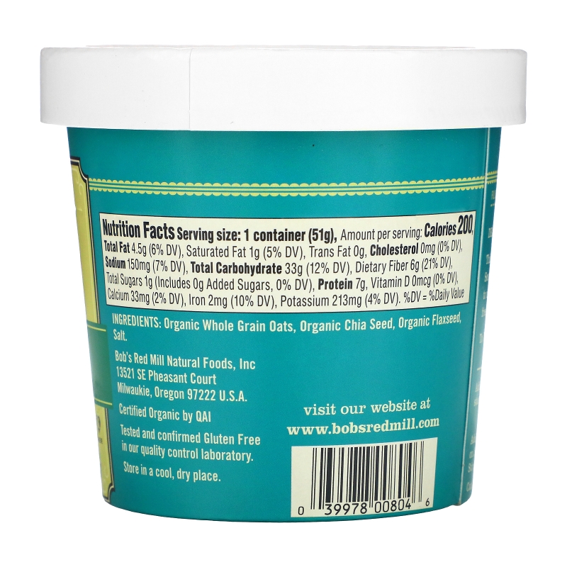 Bob's Red Mill, Органическая овсянка с семенами льна и чиа, 1,8 унц. (51 г)