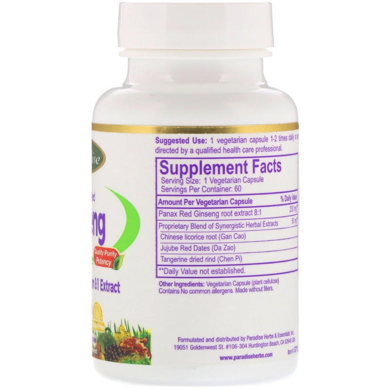 Купить Paradise Herbs Женьшень красный 60 растительных капсул – цена 3070 ₽, заказать с доставкой в Новосибирск | Интернет-магазин novosibirsk.fakeoff.ru