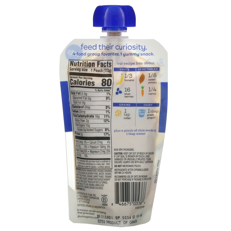 Plum Organics Удивительная смесь из 4 основных питательных продуктов: сладкий картофель черника просо греческий йогурт 4 унции (113 г)