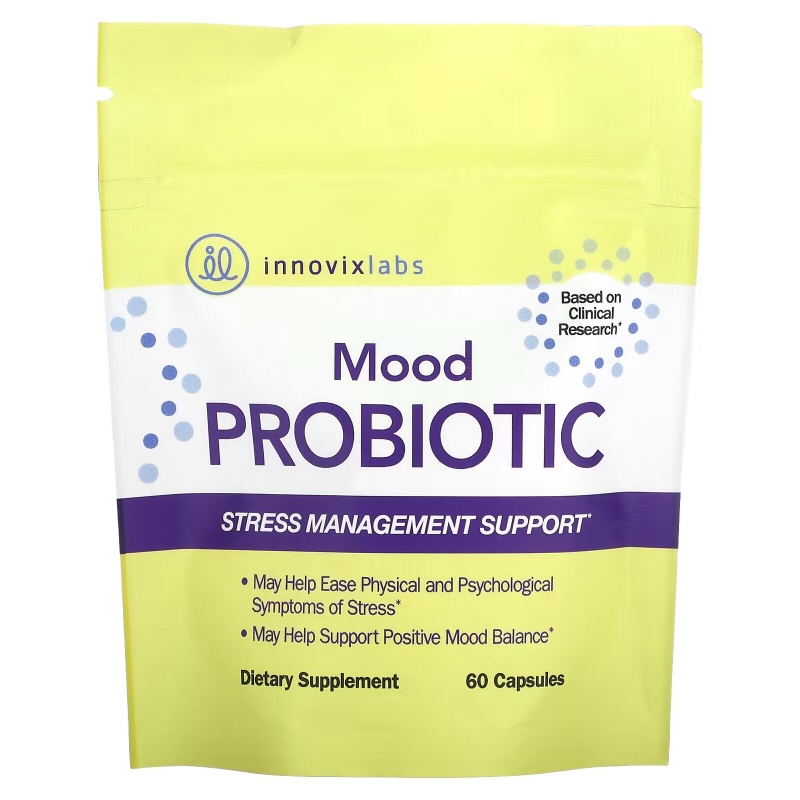 InnovixLabs, Пробиотик для улучшения настроения, помощь в борьбе со стрессом, 60 капсул