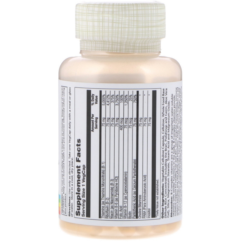 Купить Solaray, Комплекс с витаминами группы B - B-Complex 75, два этапа, замедленное высвобождение, 100 вегкапсул – цена 4310 ₽, заказать с доставкой в Новосибирск | Интернет-магазин novosibirsk.fakeoff.ru