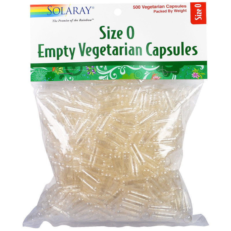 Описание добавки Solaray, Пустые растительные капсулы, размер 0, 500 вегетарианских капсул