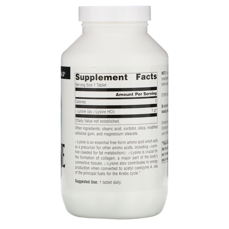 L-Лизин является существенной аминокислотой в свободной форме, которая выступает в качестве предшественника для других аминокислот, в том числе L-карнитина (необходимого для метаболизма жиров). L-Лизин имеет решающее значение для формирования коллагена, большей части соединительных тканей организма. L-Лизин также способствует выработке энергии при преобразовании в ацетил-кофермент А, одного из основных видов топлива для цикла Кребса.