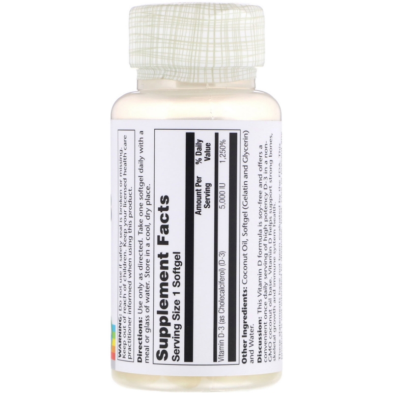 Компоненты добавки Solaray, Супер био витамин D-3, 5 000 МЕ, 120 мягких таблеток