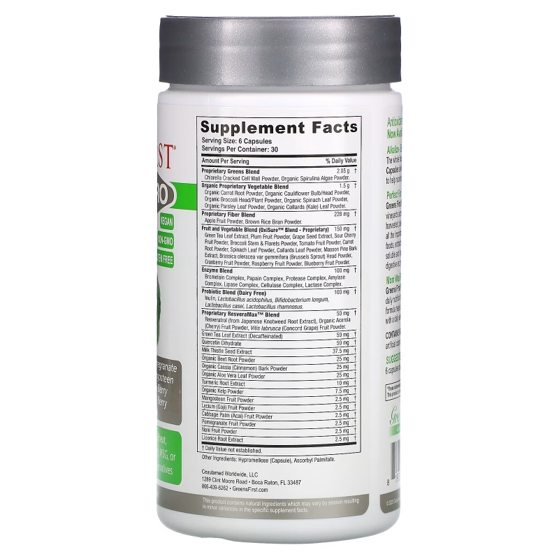 Greens First, Суперпища с фитонутриентами и антиоксидантами PRO, 180 капсул – отзывы, купить с доставкой по Москве и России по цене выгоднее, чем в аптеке | интернет-магазин novosibirsk.fakeoff.ru