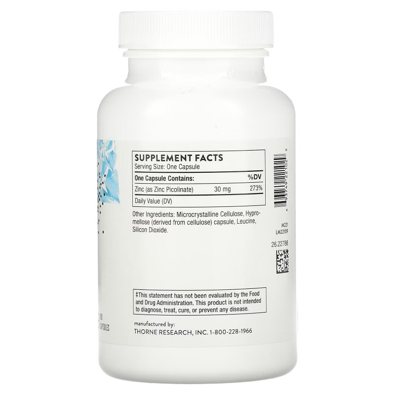 Купить Thorne Research Цинк пиколинат двойного действия 180 капсул – цена 6990 ₽, заказать с доставкой в Новосибирск | Интернет-магазин novosibirsk.fakeoff.ru