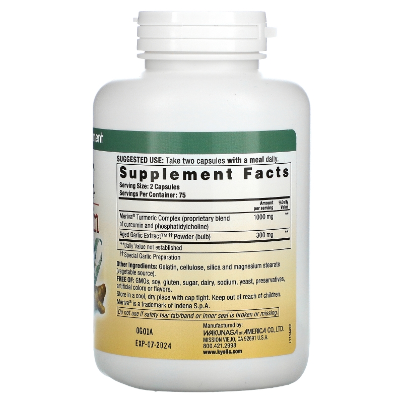 Wakunaga - Kyolic, Curcumin, 150 Capsules – отзывы, купить с доставкой по Москве и России по цене выгоднее, чем в аптеке | интернет-магазин novosibirsk.fakeoff.ru
