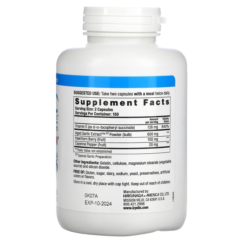 <р>Выдержанный экстракт чеснока Kyolic начинается с 100% органически выращенных † луковиц чеснока, которые доводят до совершенства через уникальный процесс экстракции, чтобы устранить запах и создать полезные соединения, которые можно найти только в Kyolic. Это уникальное сочетание витаминов, трав и выдержанного экстракта чеснока помогает поддерживать нормальный уровень холестерина, здоровое кровообращение и общее здоровье сердца.