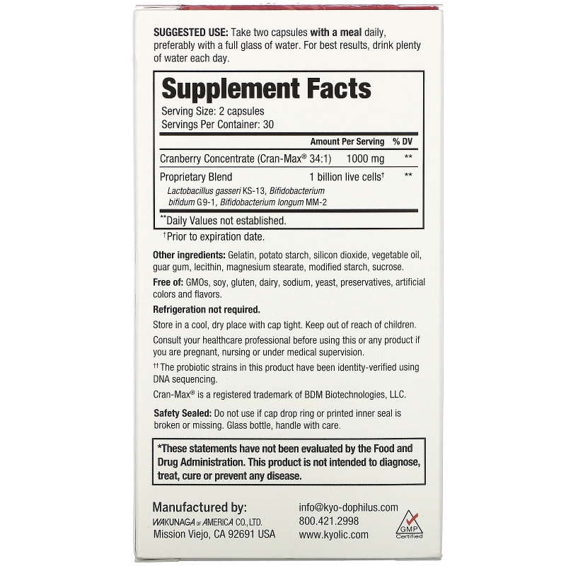 Купить Kyolic, Kyo-Dophilus, пробиотики, с экстрактом клюквы, 60 капсул – цена 4570 ₽, заказать с доставкой в Новосибирск | Интернет-магазин novosibirsk.fakeoff.ru