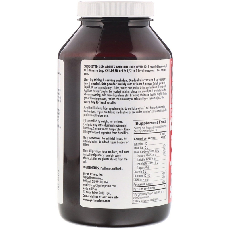 Описание добавки Yerba Prima, Порошок из шелухи оболочек семян подорожника, 12 унций (340 г)